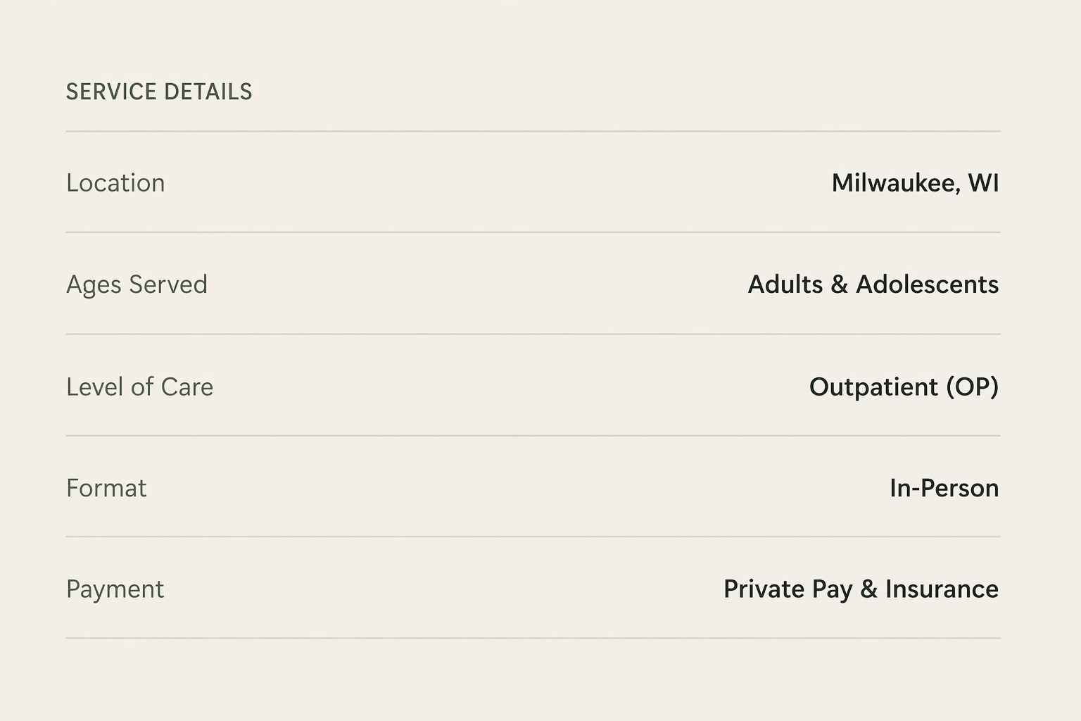 Serving adults, adolescents, and families across southeast Wisconsin